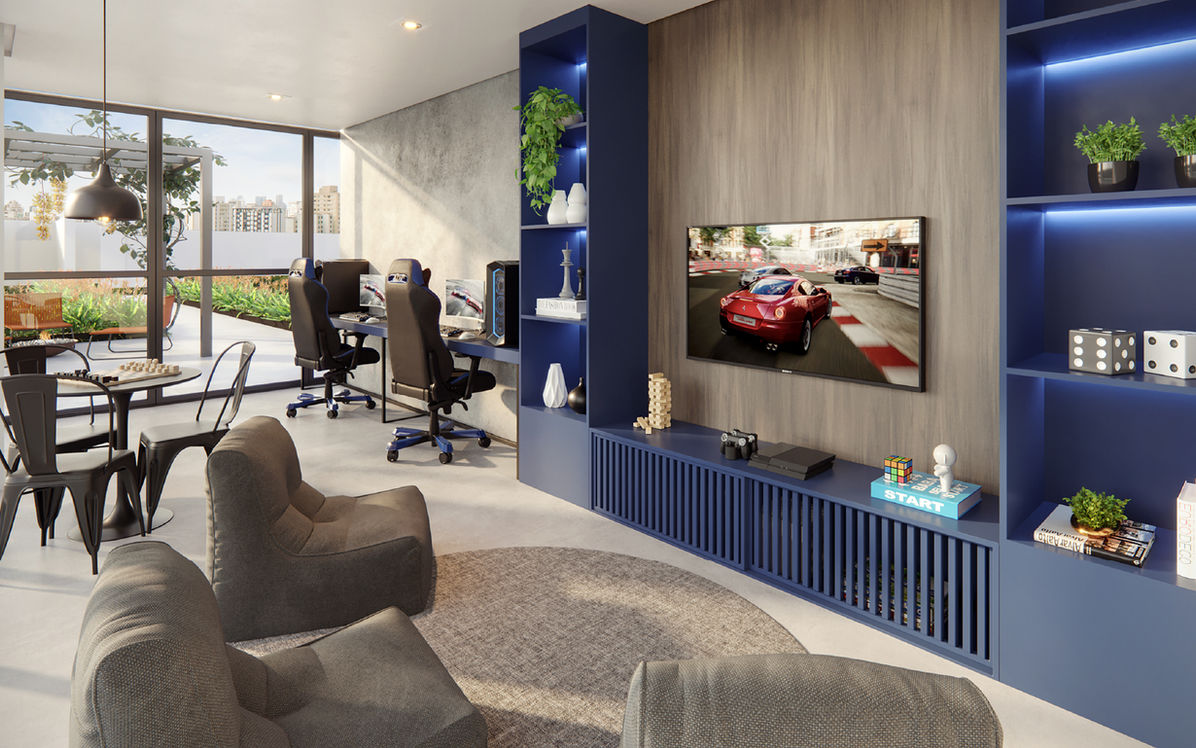 Tenha à sua disposição um lazer completo para toda a família, com piscinas, academia completa, salão de festas, coworking, espaço gourmet, playground e minimercado. Além disso, itens como pet place, bicicletário e lavanderia inteligente garantem ainda mais comodidade para o seu dia a dia, proporcionando um ambiente moderno e pensado para o seu bem-estar.